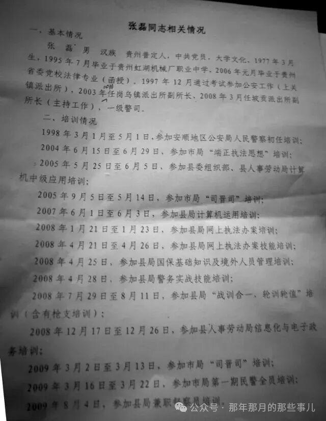 而关岭县公安局党委委员、政工室主任王湛接受大家采访时介绍,张磊曾连续两年获得当时的地区公安处“优秀责任区民警”称号,2001年被省公安厅评为全省优秀责任区民警,三次受到县公安局嘉奖,其“工作踏实,责任心强”,连续三年在您度考核中被评为优秀,“组织上认为他能独挡一方,在坡贡镇也不负众望”。