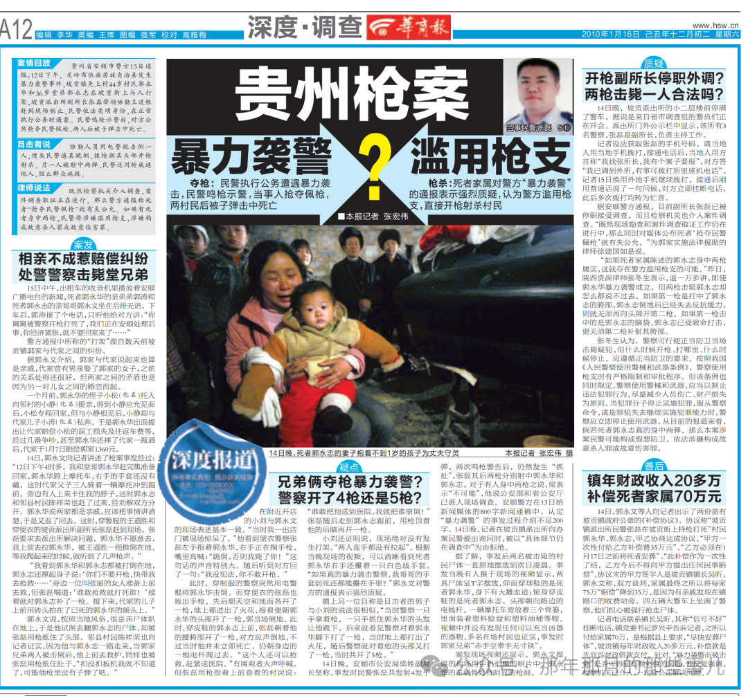 没想到电话那端他不紧不慢地说:哦,我已经在安顺了,刚采访完当事人家属,明天你看《成都商报》的消息吧。